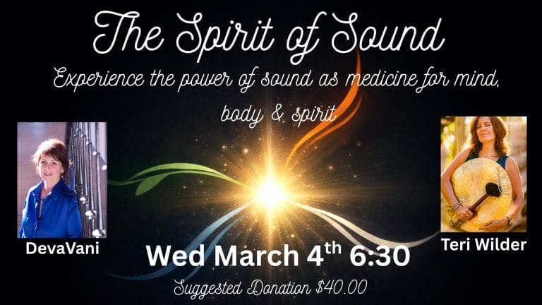 Learn about the art and science of vibratory healing & experience the ancient yoga of sound & vibration. This hands-on presentation offers a lively experiential and informative introduction to sound healing and nada yoga from Teri Wilder and Devavani. All are welcome!